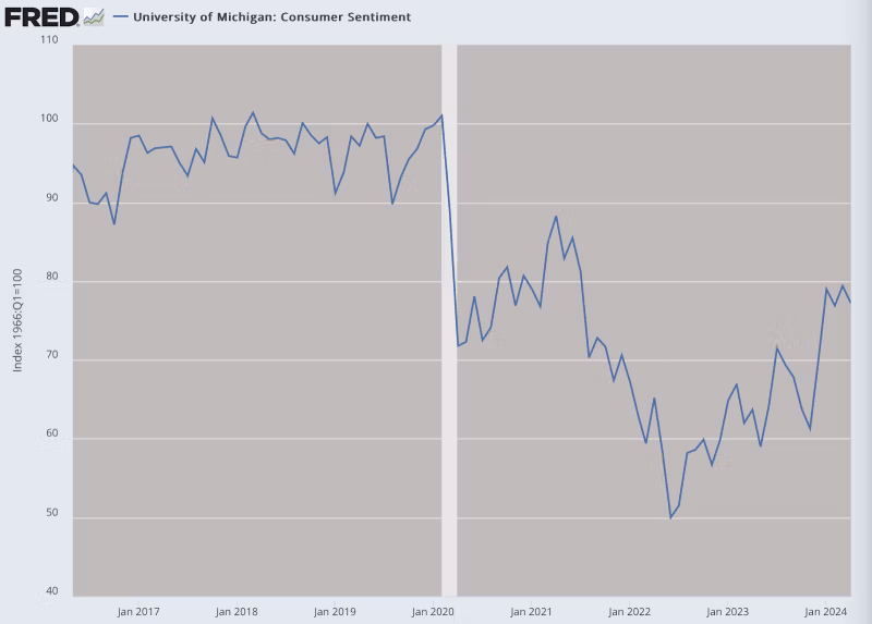 Dit lyk asof dit by elke enkele verbruikersentimentopname pas. Dit lyk waarskynlik dat mense self beter waarnemers van die werklikheid is as regeringsdata-insamelaars en statistici.