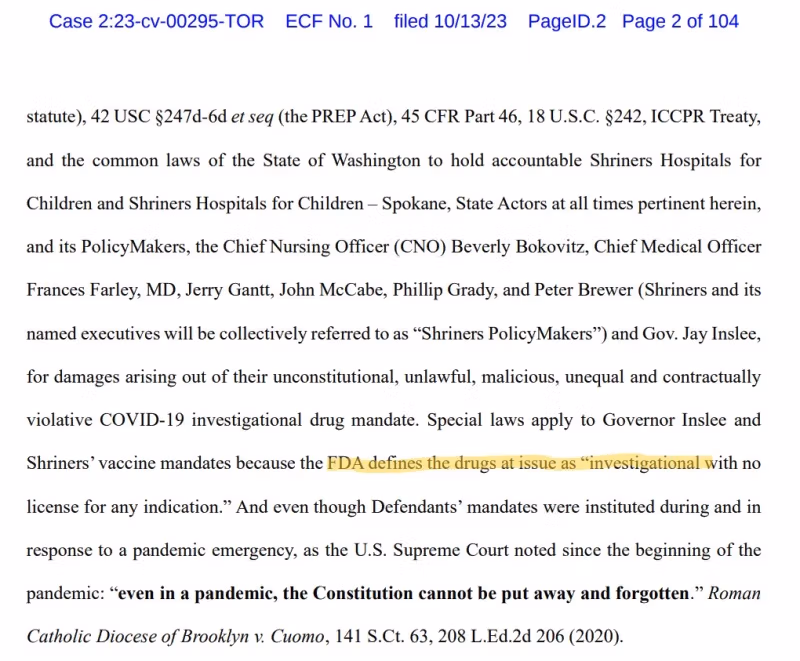 Die FDA-prokureurs het 'n manier gevind om die FD&C-wet te oortree deur 'n aparte afdeling daarin te skep (ewekansige nommer 564) en 'n nuwe "regulatoriese" pad te skep wat heeltemal buite alle farmaseutiese regulasies val: GEEN ondersoekende hersieningsraad, GEEN ingeligte toestemming en GEEN cGMP-nakoming is van toepassing op dinge wat "EUA-teenmaatreëls onder openbare gesondheidsnoodtoestand" genoem word nie.