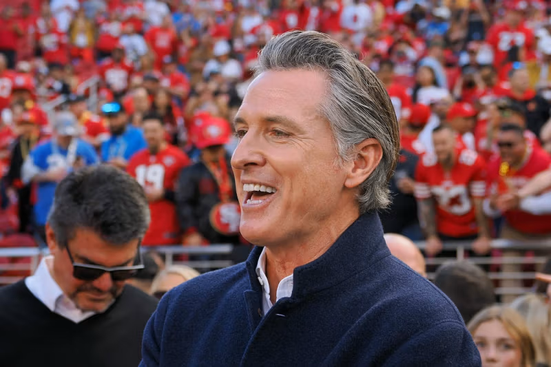 NFL: NFC-kampioenskap-Detroit Lions teen San Francisco 49ers. 28 Januarie 2024; Santa Clara, Kalifornië, VSA; Goewerneur van Kalifornië, Gavin Newsom, woon die NFC-kampioenskap-sokkerwedstryd tussen die San Francisco 49ers en die Detroit Lions by Levi's-stadion by. Verpligte krediet: Kelley L Cox-USA TODAY Sports