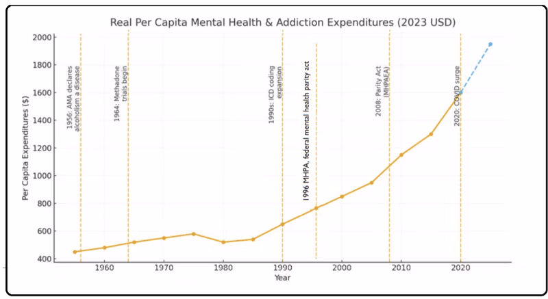 “Pariteit” klink menslik. In die praktyk het dit gewone ontbering medies gemaak, lewenslange afhanklikheid aangespoor en 'n bedryf gebou wat nooit enigiets hoef te genees nie. Wie sou nie wou hê dat skisofrenie ernstig behandel word nie? Maar die mandaat het veel verder gestrek as ernstige siekte. ADHD, angs, outisme, verslawing – eens hanteer deur familie, geloof of persoonlike veerkragtigheid (hand aan hand met geestesgesondheidsinstellings en meer ernstige sosiale stigmas en wetlike kodes) – het permanente faktureerbare toestande geword.